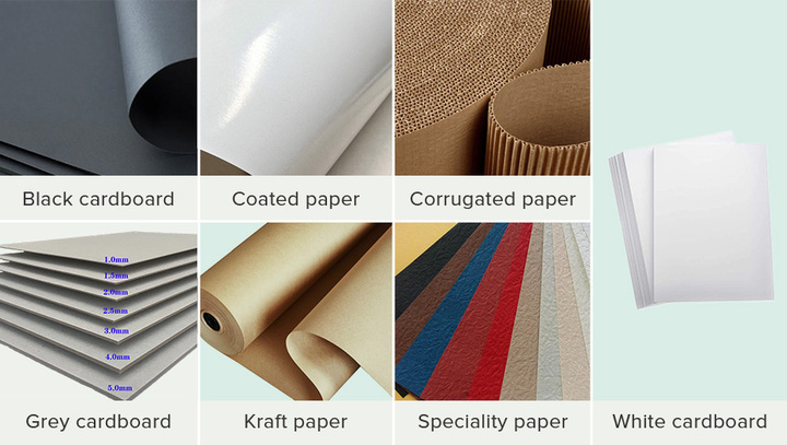 We offer many types of paper materials like white cardboard, coated paper, black cardboard, corrugated paper, kraft paper, grey cardboard etc, to meet client's diverse customization requirements.